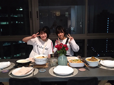 食事はおいしかったです。日本の食事よりもカロリーが高いため、太ってもゆったり着られる服をもっていくと良いと思いました。寝る前にみんなでアイスを食べながら過ごしたのが楽しかったです。