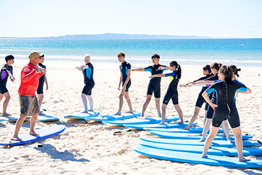 午前中は一般英語コースの学生と一緒の英語レッスンに参加し、午後はさまざまなアクティビティが企画されるコース。ビーチのそばというロケーションを活かしたサーフィンやカヤック、民族楽器体験など、オーストラリアを満喫できる豊富なアクティビティが楽しめる。