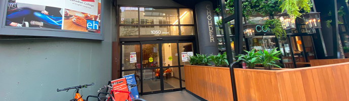 バンクーバー中心部にある校舎には学校運営のレストランや屋上パティオがあり、徒歩15分圏内には学校専用の寮も所有している。2ブロック先にはメインストリートのロブソンストリートがあるので、放課後のショッピングなどにとても便利。専門コースを学べるカレッジを併設している。