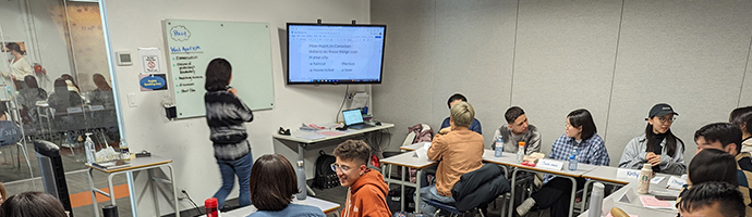 授業はすべて選択科目で、生徒が興味のある分野を重点的に学べる方法をとっている。実践的な英語力の向上を目指すほか、会話、文法、発音、進学準備英語、ビジネス英語などから好きな科目を選択できる。校内での母国語の使用は禁止。